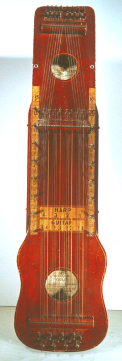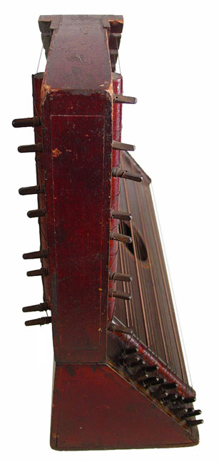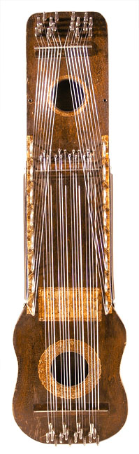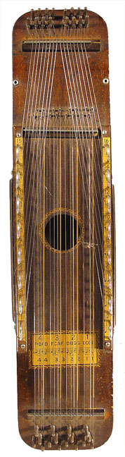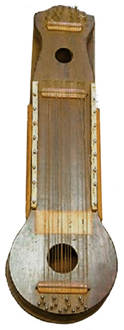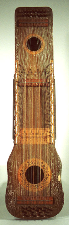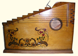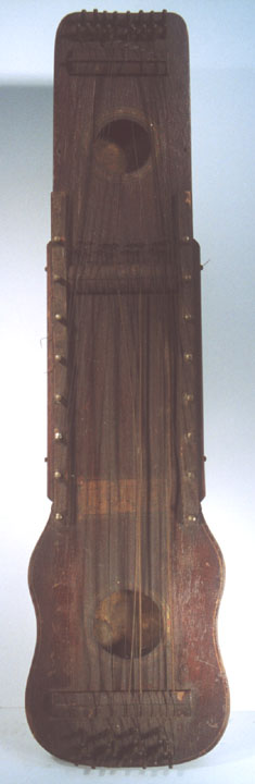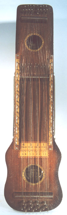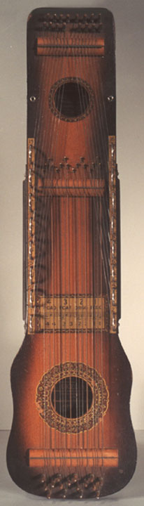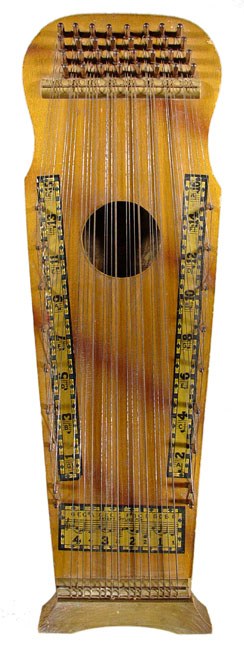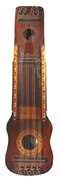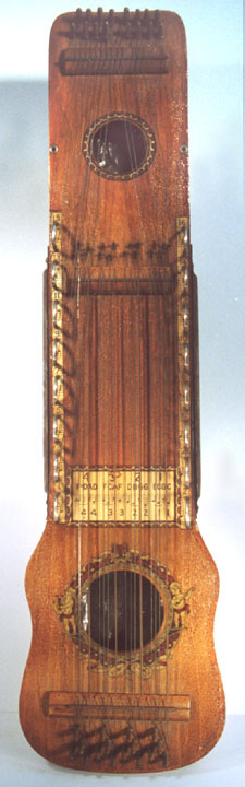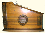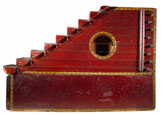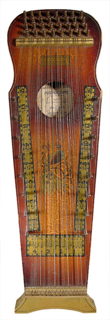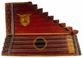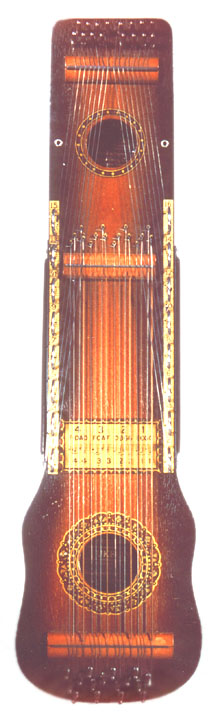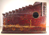2. This Marxochime is diatonic in the melody strings and has the tuning pins for the chord strings and melody strings situated at opposite ends of the instrument. |