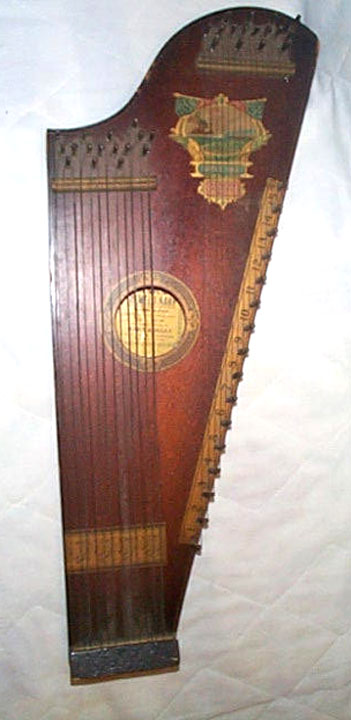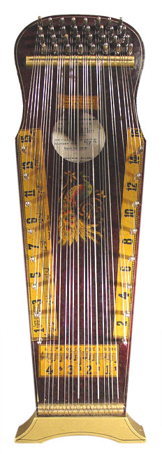 The unmistakable eagle decal marks this as an Oscar Schmidt Co. product. It probably dates from right around 1930. The thumbnail image is linked to a page that gives a close-up look at how it works. |