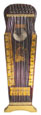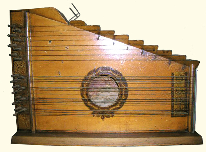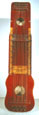 Hawaiian Art Violin (stair-step type)Though radically different in appearance, the stair-step-type Hawaiian Art Violin is configured exactly the same as its ukelin-type counterpart, offering the same 4 chords and 16 melody strings. This is probably the early form of the instrument, abandoned in favor of the easier-to-produce ukelin type. These always bear a perfectly "normal" inside label of the type used for some ukelin-type Hawaiian Art Violins. stair-step type Hawaiian Art Violins