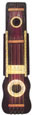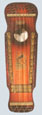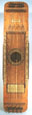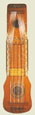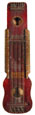 violin-ukeThe violin-uke was the flagship of the entire Marx line of instruments. Like ukelins and Hawaiian Art Violins, there seems to be one of these in every closet in the country. The range of its melody strings differs from that of the ukelin, in that it is tuned in two diatonic octaves of G, rather than C. They were offered in several different finishes, as shown below. For a more detailed look at violin-uke types, see Kelly Williams's excellent Violin-Uke Page. I am indebted to Kelly's untiring record-keeping for most of the information I give below. I have cited his reference numbers for the various forms of violin-ukes shown below. Even an instrument this distinctive in form was not spared the flippant use of its name by the company; other instruments of totally different form also bear the identity "violin-uke" on their labels. One example of these variant types is given below. It appears that within only a few years after its introduction the violin-uke evolved to its most familiar form: gold finish with diagonal stripes ranging in color from purple to green. Following a logical trail of evidence, the earlier forms are documented in the first row below. In regard to dating various features, actual sales slips or receipts are the only valid source for this information. violin-ukes, early forms (c. 1929-34), left to right: