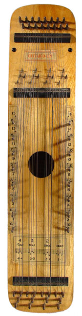 guitar-o-lin/banjolinOne of the many bowed instrument design twists is represented by an instrument most commonly called a "guitar-o-lin" or "banjolin". These amount to bowed fretless zithers with the melody strings supported by posts rather than loops like the ukelin. Some instruments bearing these names are simply shaped like rectangular ukelins, while some have one end shaped in any of a number of different profiles. There are other variations of form as well, but all are functionally identical 4/16 bowed fretless zithers. guitarolins/banjolins, left to right: