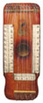 rectangular ukelinThe rectangular ukelin also originated in the 1920s. It may have been introduced for the purpose of using up wood that was slightly too narrow for the guitar-shaped models, or to spare a bit of labor in production. It normally has only one centrally located sound hole, as opposed to the guitar-shaped ukelin's two. |