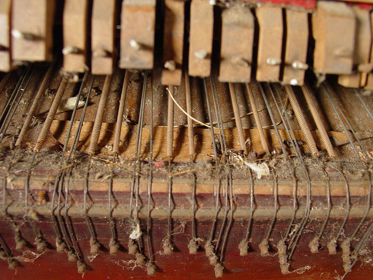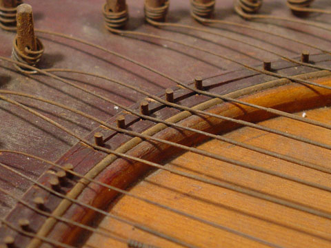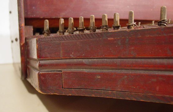 As Dolceolas go, this one was in very good condition. But even the best specimens of these normally suffer from some pretty major sturctural problems, for a combination of two reasons: the original strings are gauged too heavily, and the long finger joints of the frame are weak. As always seems to be the case, this one required disassembly and re-setting of the joints.