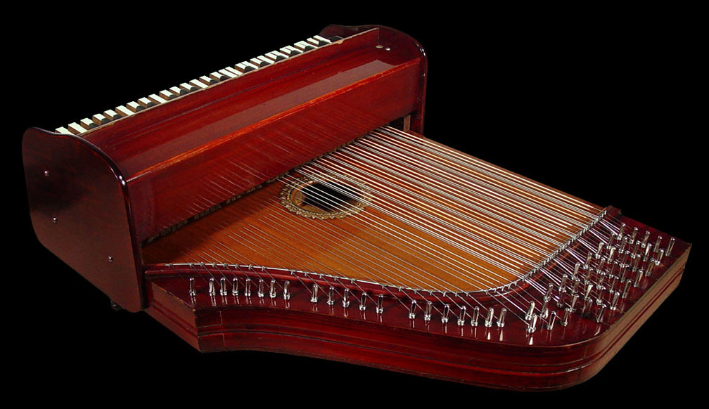 These images below mostly just show the dolceola's "before" condition; only a couple of "action shots" from the restoration are given, those showing one stage of squeezing the joints back together. (Though not evident in the images, the back of the instrument had been removed when these shots were taken.)
