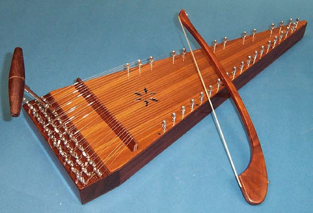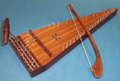 One last instrument that's similar but not a member of the instrument family dealt with here is the "bowed psaltery". There seems to be some debate concerning its time of origin. Some hold to the notion that it is a product of medieval times, while others offer evidence to the effect that it goes back no further than the 1940's. I don't claim to know, but I do know that in its usual triangular form and with no accompaniment strings, it is not an instrument that was manufactured by the American companies whose instruments are the focus of this site.