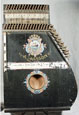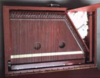 7. The total lack of decalcomania suggests the possibility that this gigantic 19/25 chord-zither may be homemade. It appears to have a single-strung fully chromatic two-octave melody section, supported by 19 chords of four strings each.