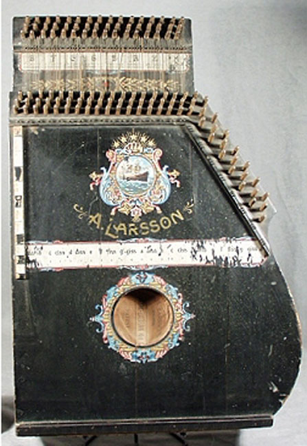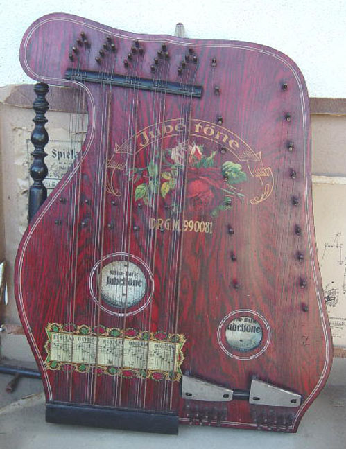 Though this site deals only with fretless zithers of American manufacture, these instruments were also manufactured in Europe, and for the sake of comparison European fretless zithers are touched upon very briefly at the bottom of this page. Germany in particular produced her own nearly endless variety of them, and in fact they are still in production there. The ornamentation and body designs are often different from their American-made counterparts, but for the most part, their functionality is the same. This presents some confusion, as Germany is also the birthplace of some similar-looking instruments that are altogether different from the fretless zither in terms of functionality. So perhaps the best place to begin answering the question above is to take a quick look at a few of these instruments that are not fretless zithers. (Click on images to open larger ones.)