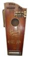 The harp-o-chord was produced by the Harp-O-Chord Company of Columbus, Ohio. This early 20th century firm manufactured a small line of fretless zithers, all of which are unusual. Among them are the company's namesake, the harp-o-chord itself, the "Harp of David," and the "Little Joe." The harp-o-chord is unique in that its melody section is furnished by a separate instrument, namely a harmonica, which fits in the slot at the upper left of the instrument's body. Kelly Williams covers this branch of the fretless zither family extensively at his website, the Guitar-Zither Clearinghouse. To view Kelly's great coverage of the company, click here.