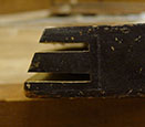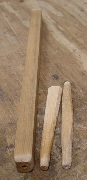 Here is the result. I then drilled the holes for the hitch pins according to these marks. (And yes, they do have to be drilled; you can't drive those little nails into hard maple.) As to the diameter of the holes, the pins should fit tightly enough to require a little more effort than driving them into pine or some other soft wood.