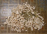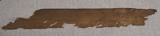 And here is a piece of the block after removal. The side shown is the glue joint side. As can be seen, the parting was a clean one; there are virtually no splinters from the surface it was joined to. Incidentally, the diagonal cut is from a point in its removal when it was to my advantage to cut it, which I did with scissors.