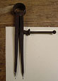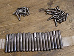 The next project was to polish all the metal parts...tuning pins, hitch pins, screws, and bridge wire. I do this with a wire wheel in my ancient tower-type bench grinder. Shown are some crude-but-effective tools that have saved my fingers several pounds of flesh. They're just holders for pins of various sizes. The long one is for tuning pins; it's helped me polish a couple thousand of them. The shorter ones are for bridge and hitch pins.