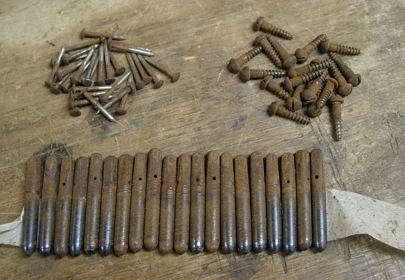 ...and after. You'll note that I take it easy on the threaded parts of the tuning pins; I'd rather leave a little rust than to dull the threads or reduce the diameter any more than I have to.
