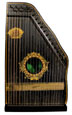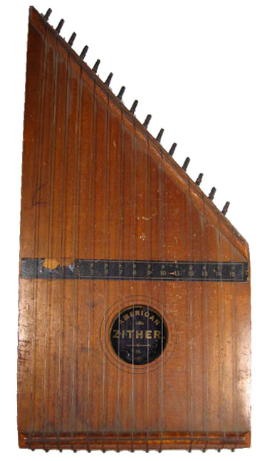 American zitherAnother "psaltery"-type instrument, the "American zither" has no chords, only melody strings. It appears in a variety of forms, some of them quite dissimilar from others. A couple of types are shown. American zithers, left to right