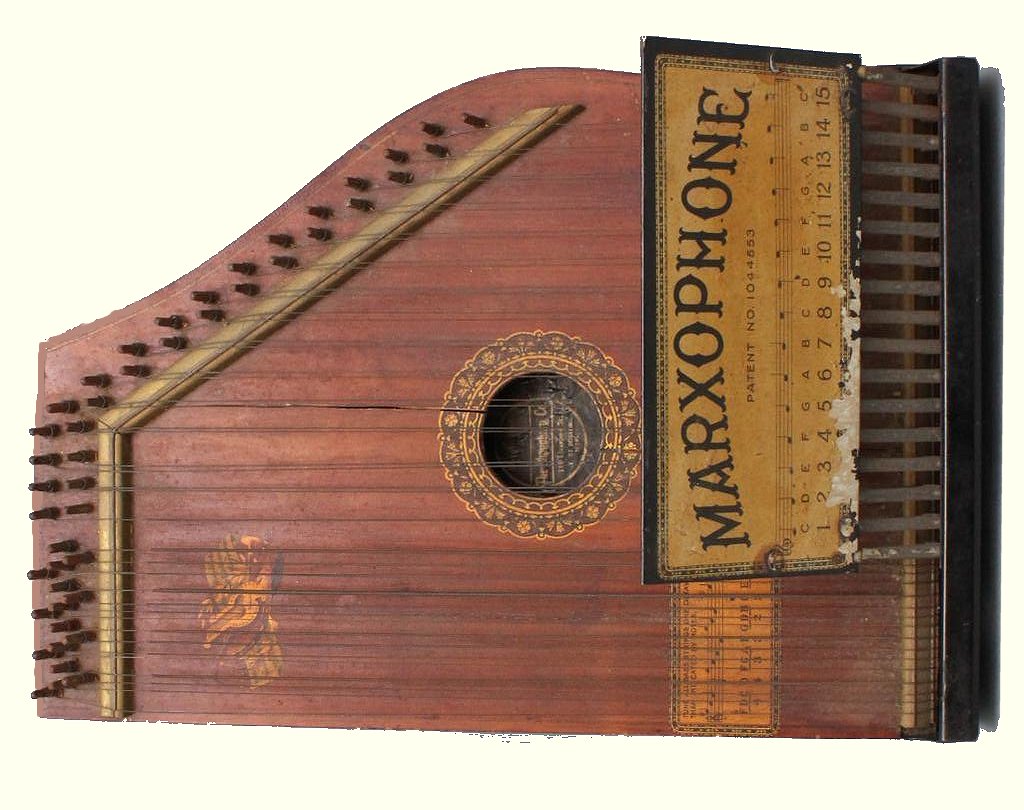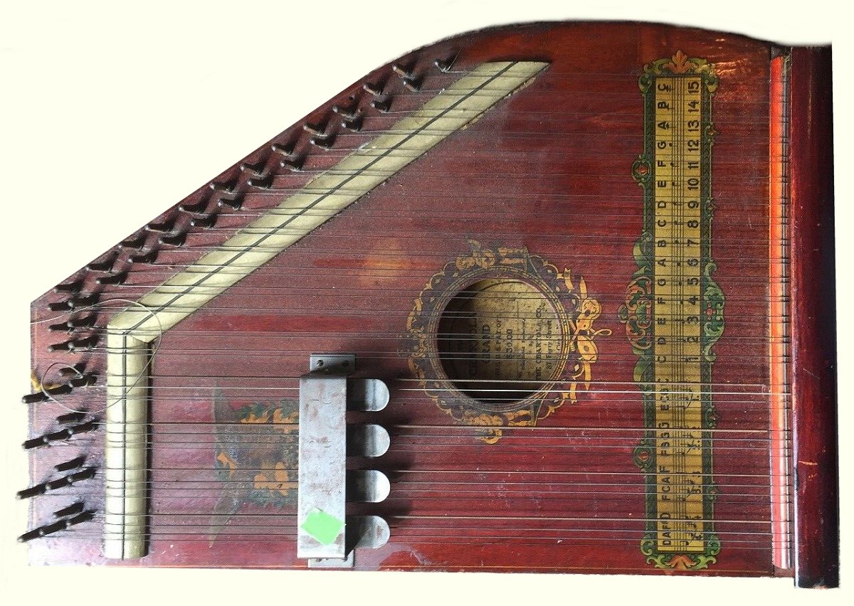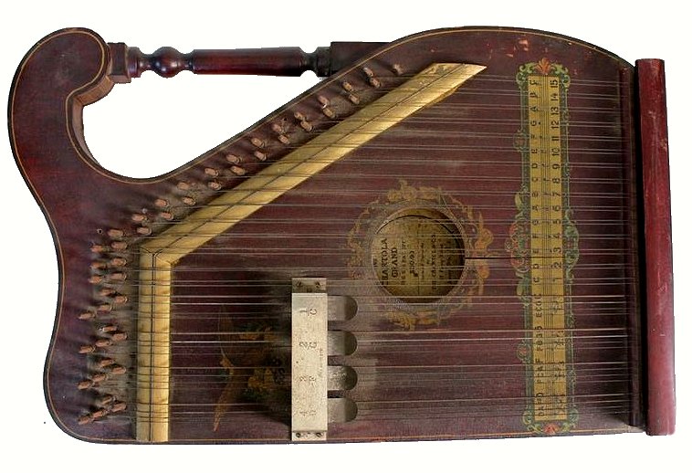 Autoharp PrecursorsFolks shopping for autoharps often come across instruments that look vaguely like autoharps or look like autoharps designed by Salvador Dali. Unfortunately folks selling such instrument almost always call them autoharps, which has fooled more than one newbie into paying too much for something that is really only an unplayable curiousity or wall decoration.Though there are many examples that could be covered in this article, I'm focusing on the ones I keep coming across. These are representative of most classes of pre-autoharp instruments that are often erroneously labeled "autoharps." To be fair, ALL of the instrument families we discuss on this page could sound very nice when played by someone who really took the time to learn them. If one that is playable comes your way and you want to learn to play it, GREAT. But the vast majority have already been damaged by poor storage, etc. by the time you see them. And even if they are playable, there is not a high demand, because they never passed into common use like, say, the banjo, mandolin, or ukulele. Resale value-wise, only a handful of people collect them. If a collector already has the model you own, he's not likely to need another one. So, Great-Grandma's old Marxophone or whatever is NOT very likely to put your child through college, or even tires on you car. If you already have one of these this article may help you figure out what you have, or at least what class of instrument it belongs to. If you are looking for an autoharp and see one of these that you're thinking of buying instead, that's fine, too. Just remember it's not an autoharp, and there aren't any instructors or books for most of them, so you WILL be on your own. That said, this article also celebrates some of the great, if failed, attempts to put music into homes over the decades in which they were made. A Common Ancestor - the German Fretted ZitherUntil the dawn of radios and phonographs, the only way to have music in your home was to make it yourself. Unfortunately, not every family could buy instruments and pay for lessons. A number of inventors realized that such families might still be willing to pay for "musical instruments" that supposedly had no learning curve. A wide range of instruments were sold door to door in North America and Europe. Most were variants of a German-built zither. So that's where we'll start, even though hardly anybody confuses these with autoharps.